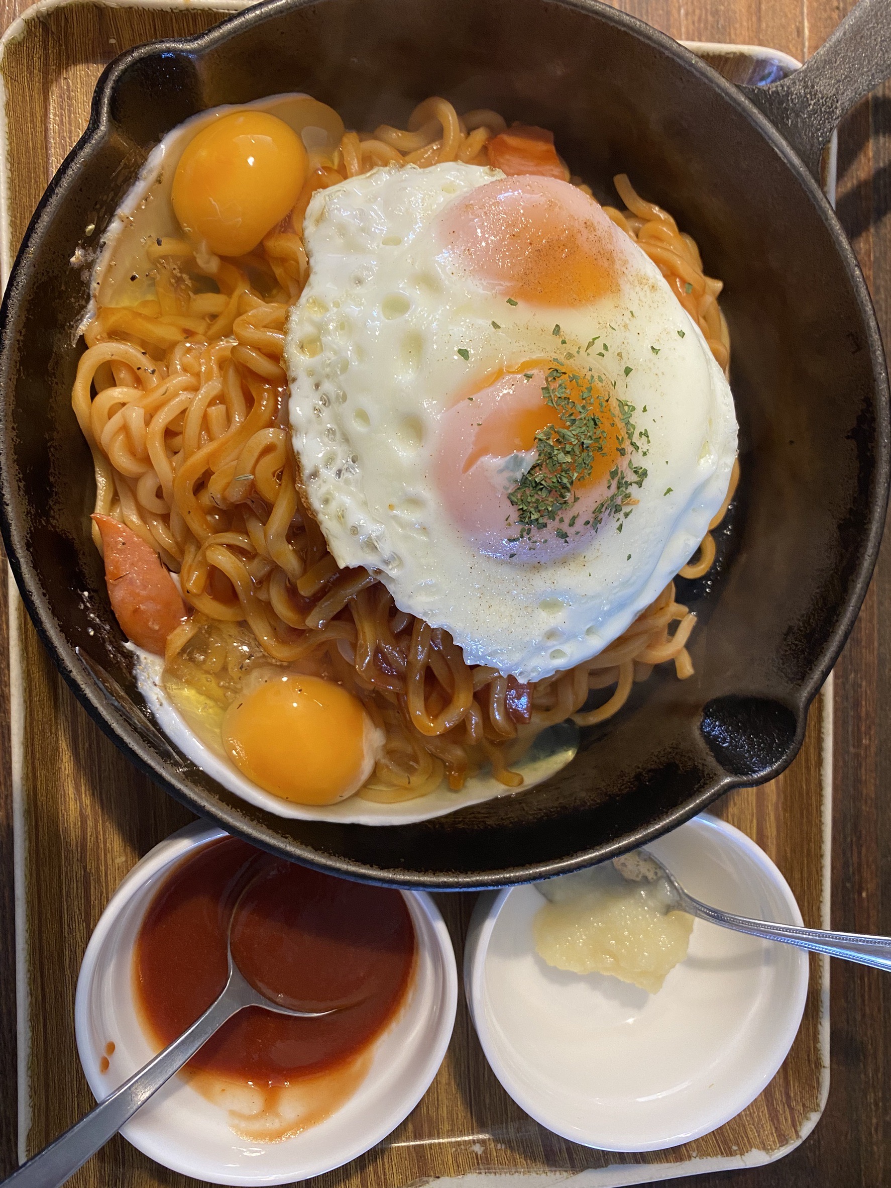 まず運ばれてきたのは、スキレットで提供されるナポリタン。