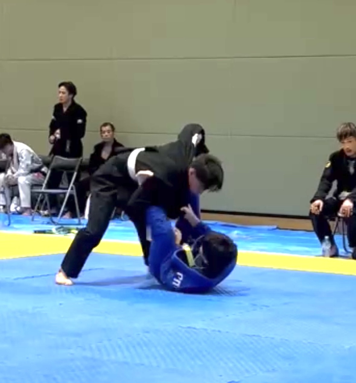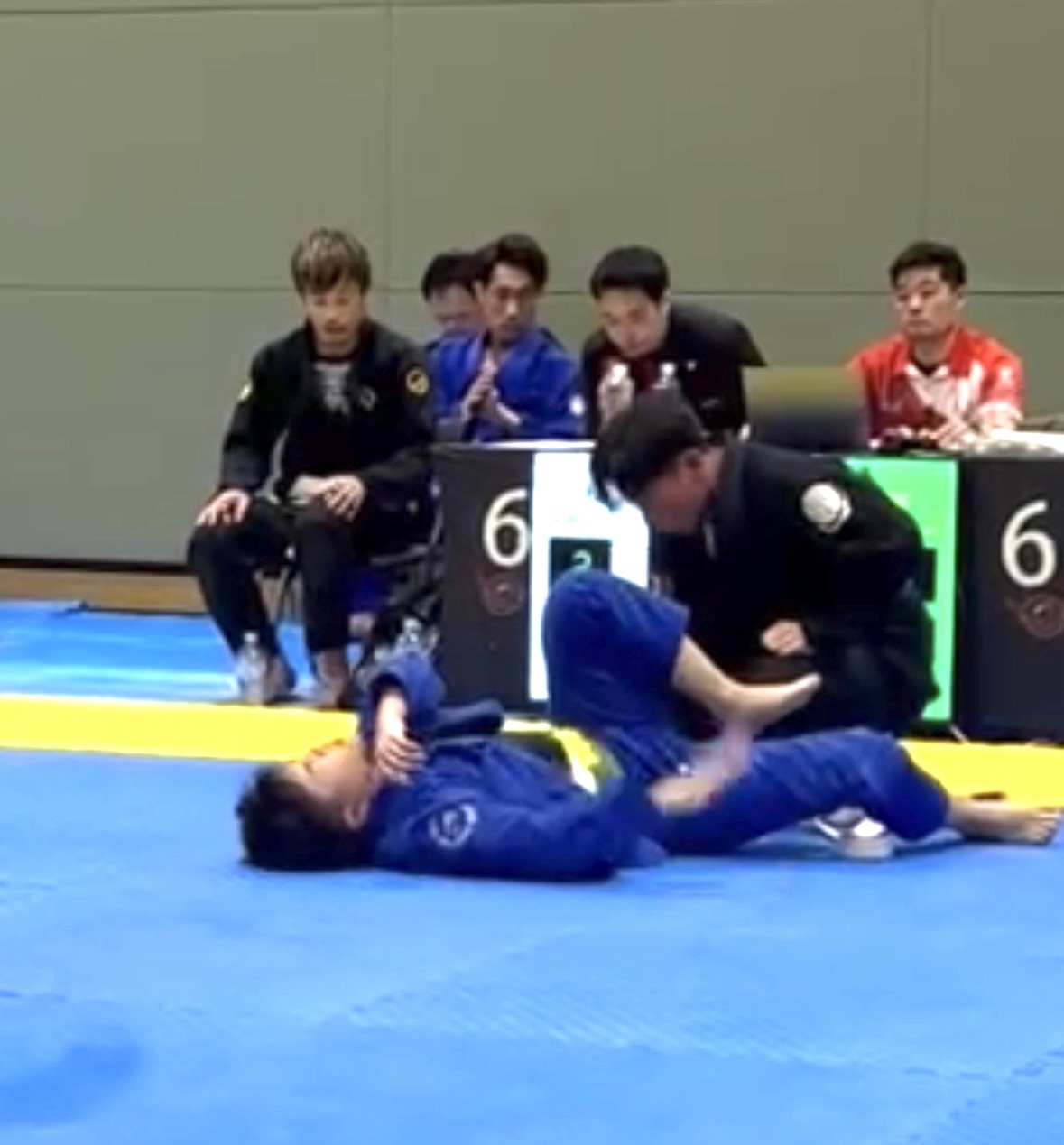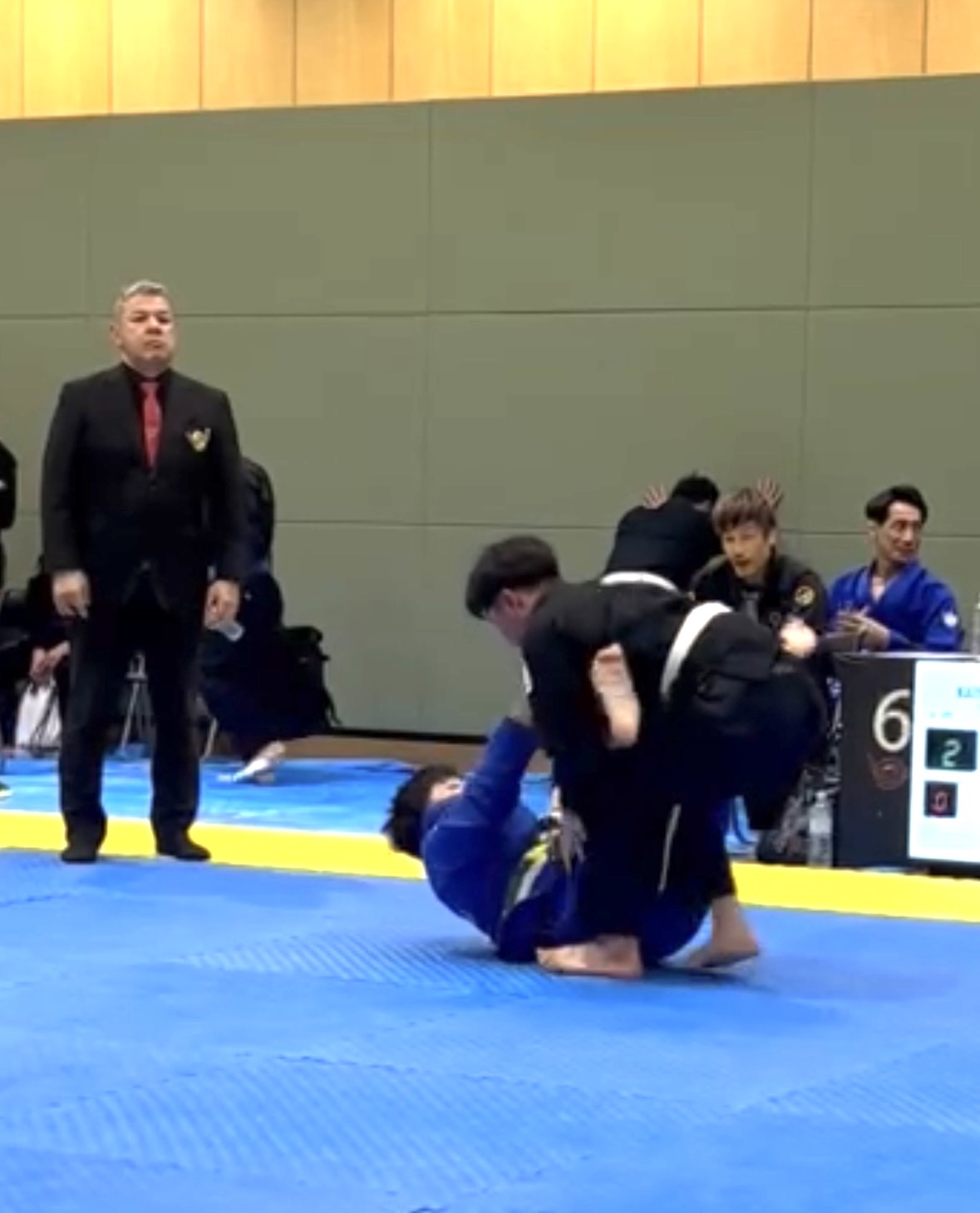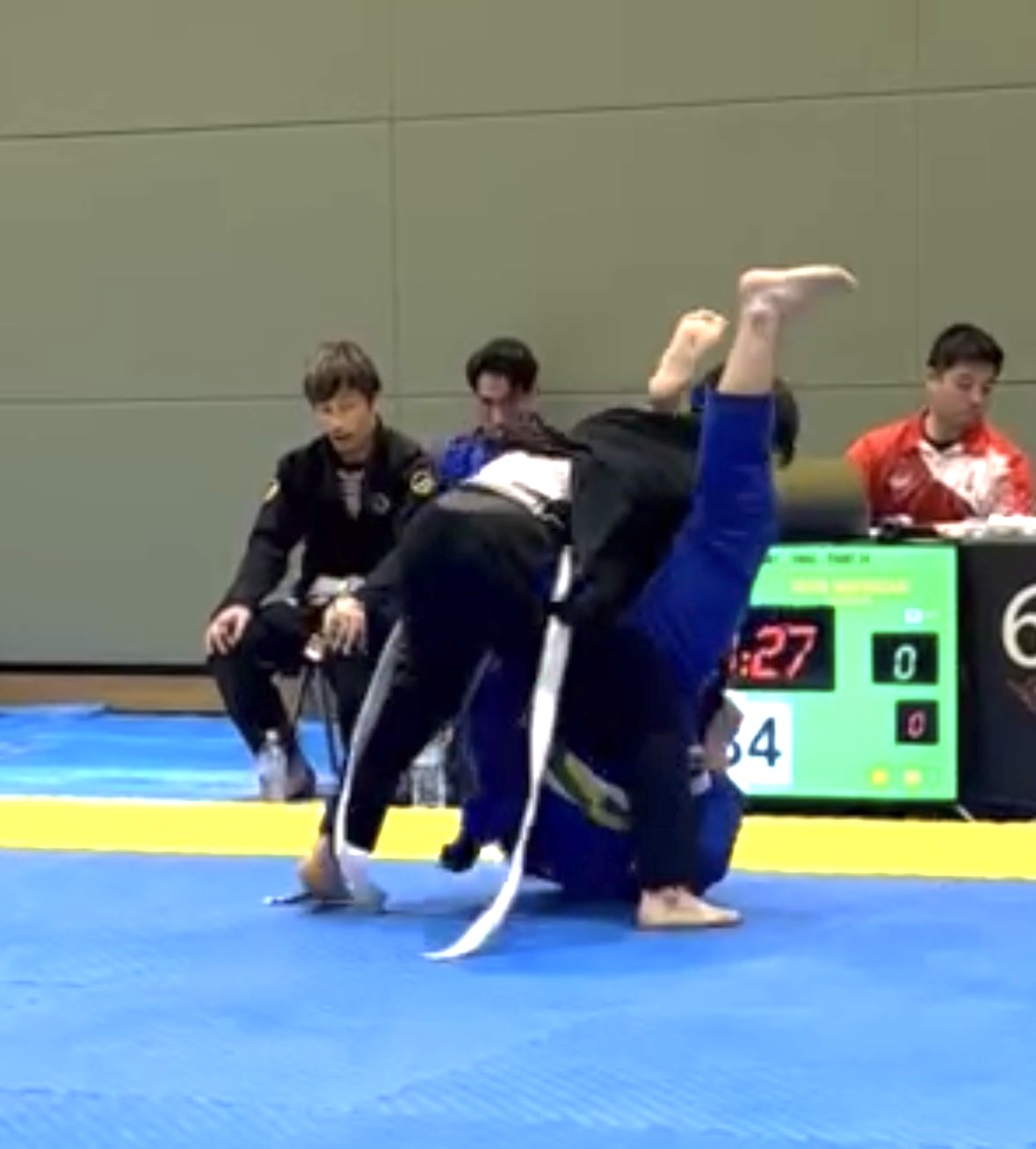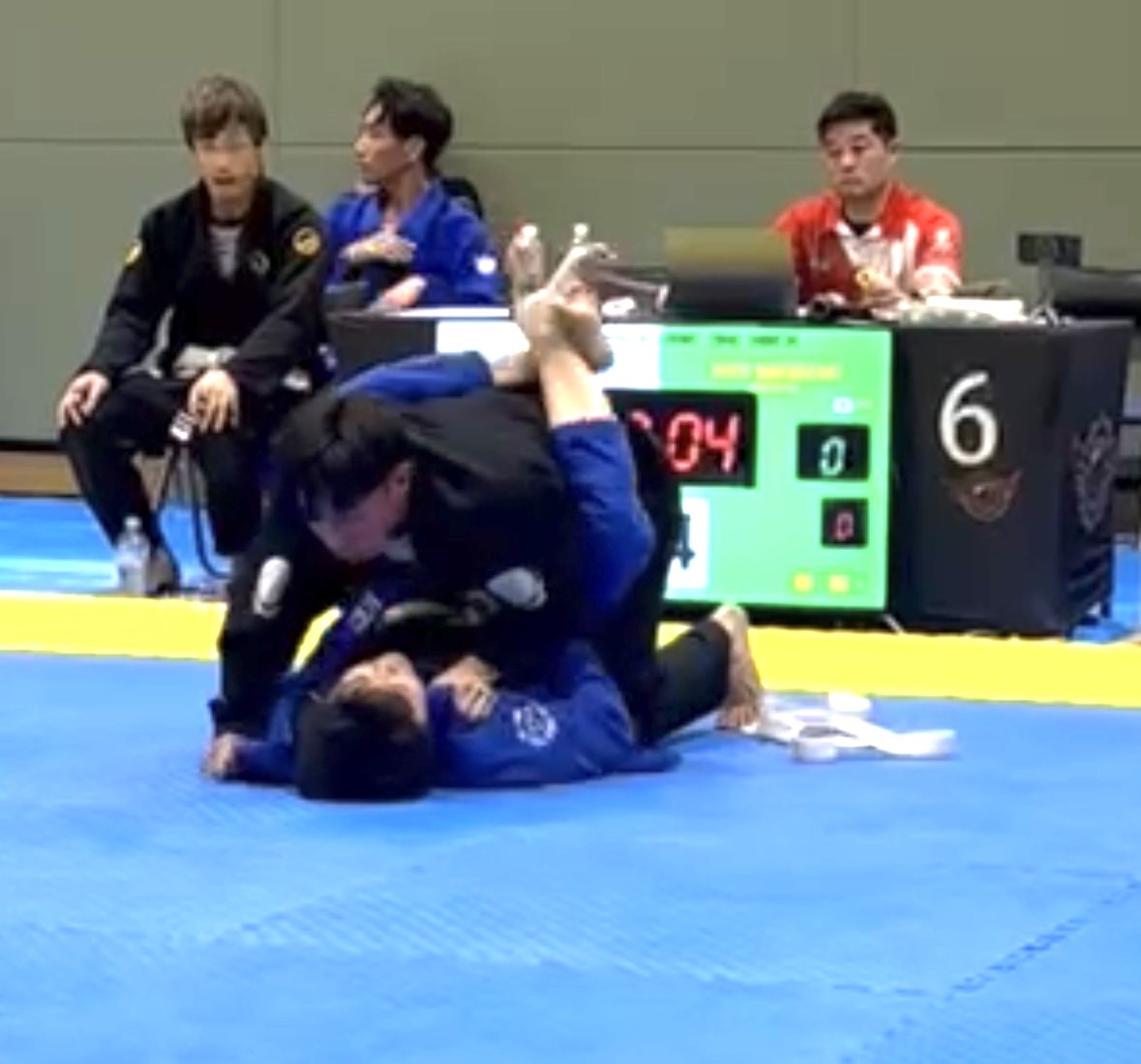 序盤、相手に足を取られ、崩れながらクローズガードへ。