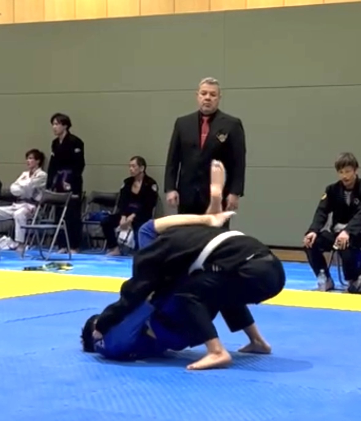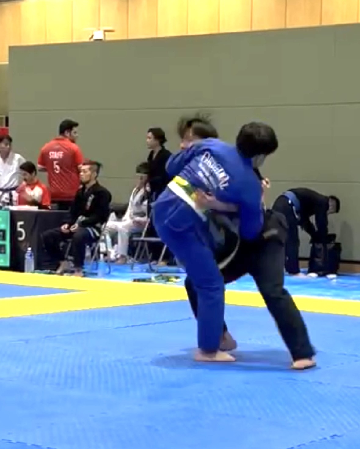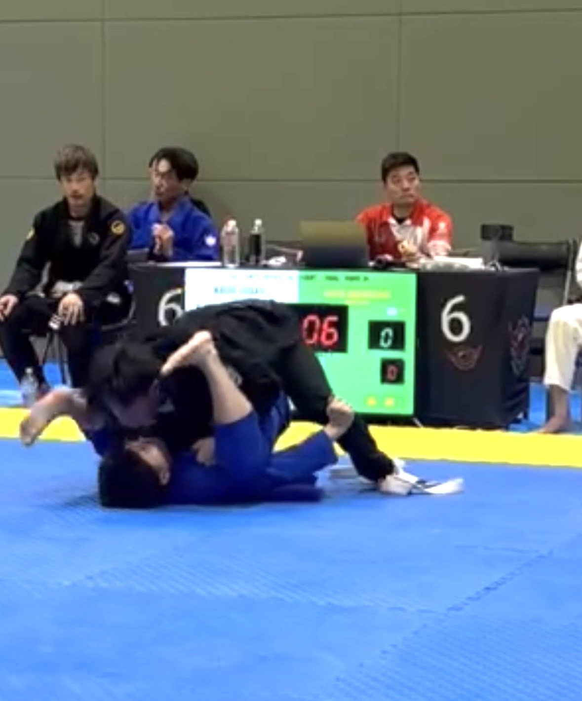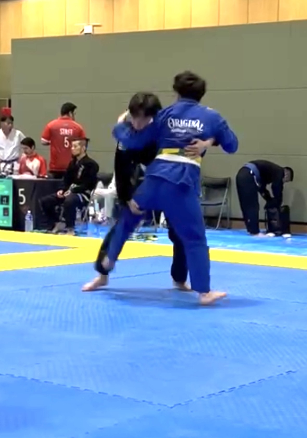 序盤、相手に足を取られ、崩れながらクローズガードへ。