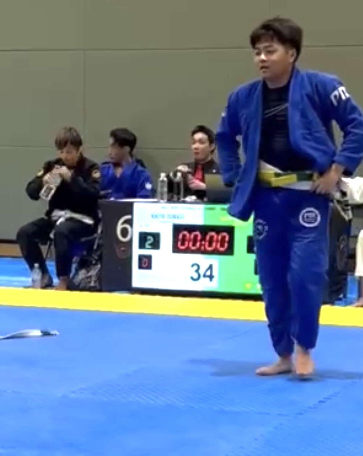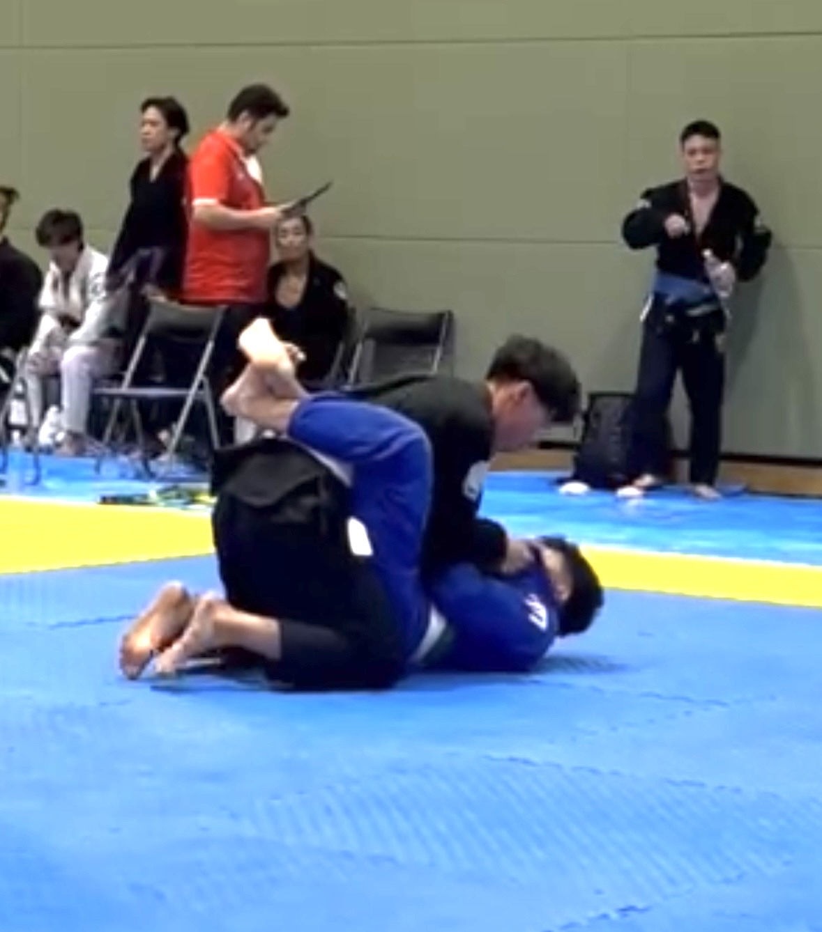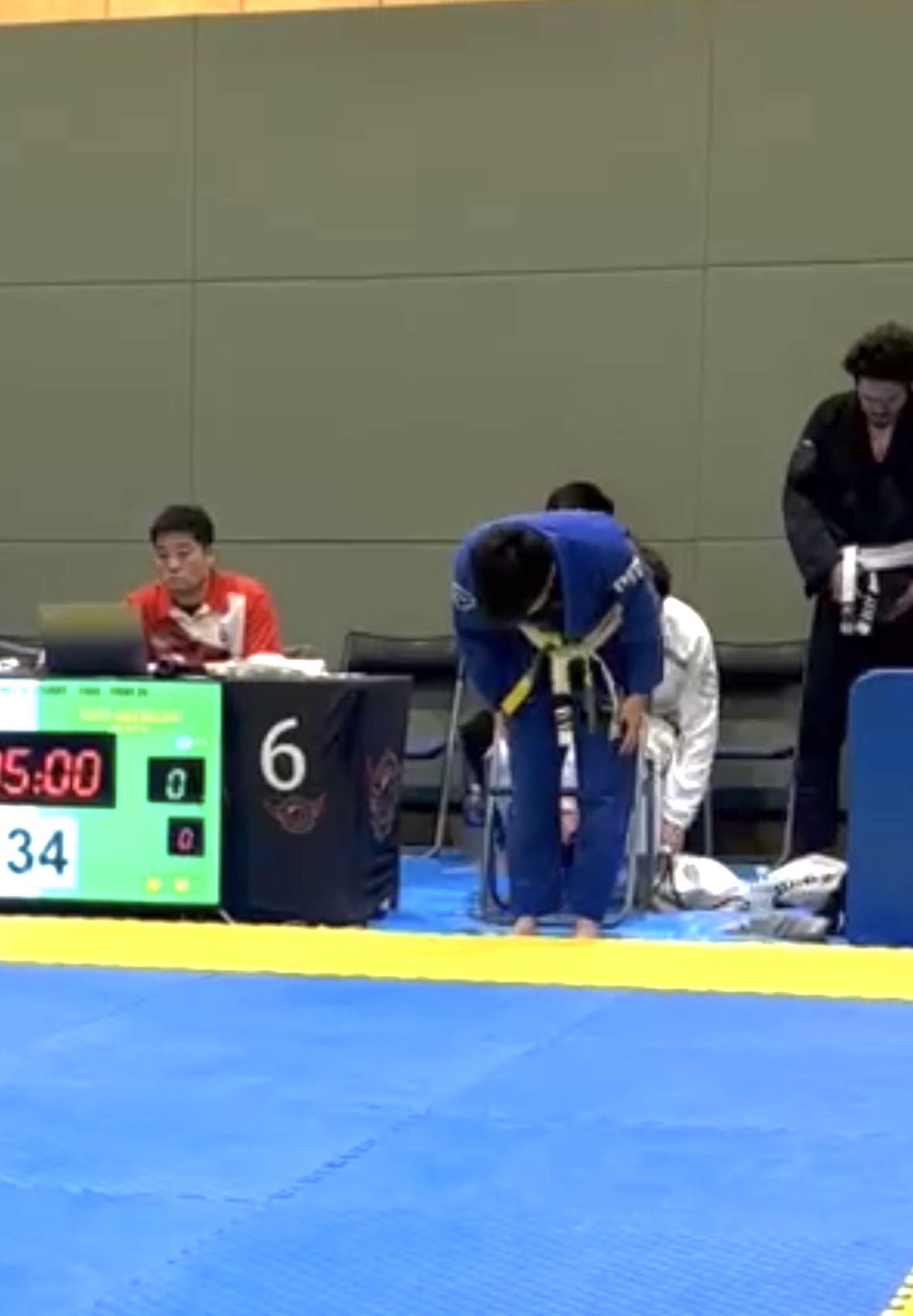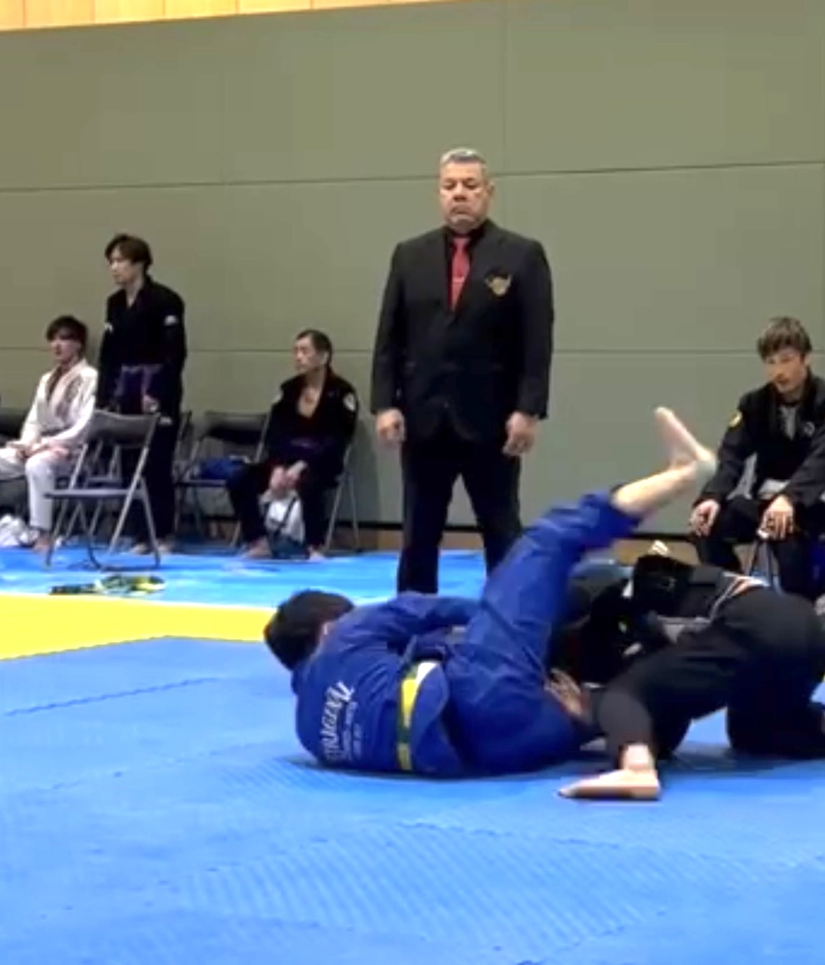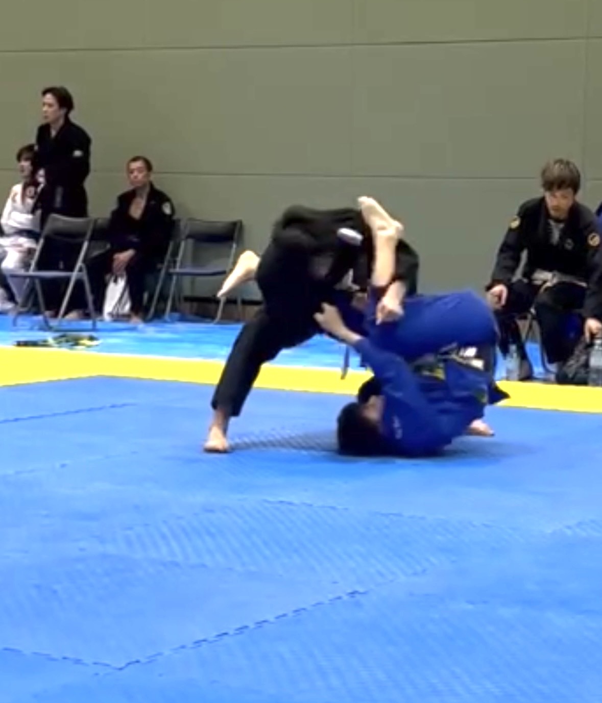 序盤、相手に足を取られ、崩れながらクローズガードへ。